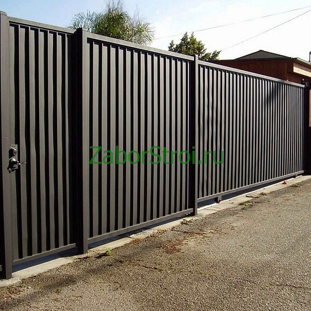 Откатные ворота из евроштакетника с встроенной калиткой